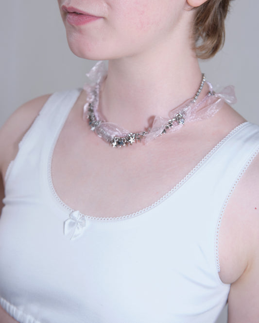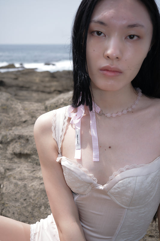 Rose Quartz-Baby Pink Ribbon Belt Necklace【Delivery in February 2025】
