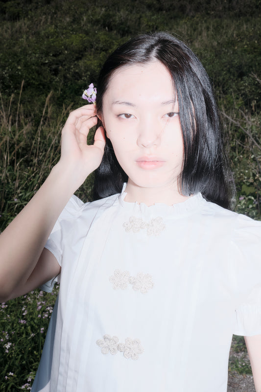 Flower Frog Button Shirt white【Delivery in September 2024】