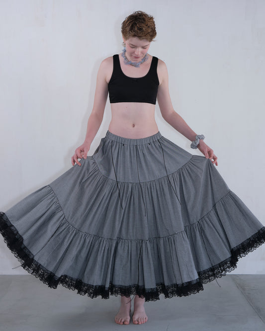 Long to Mini Tiered Skirt black check【Delivery in September 2024】